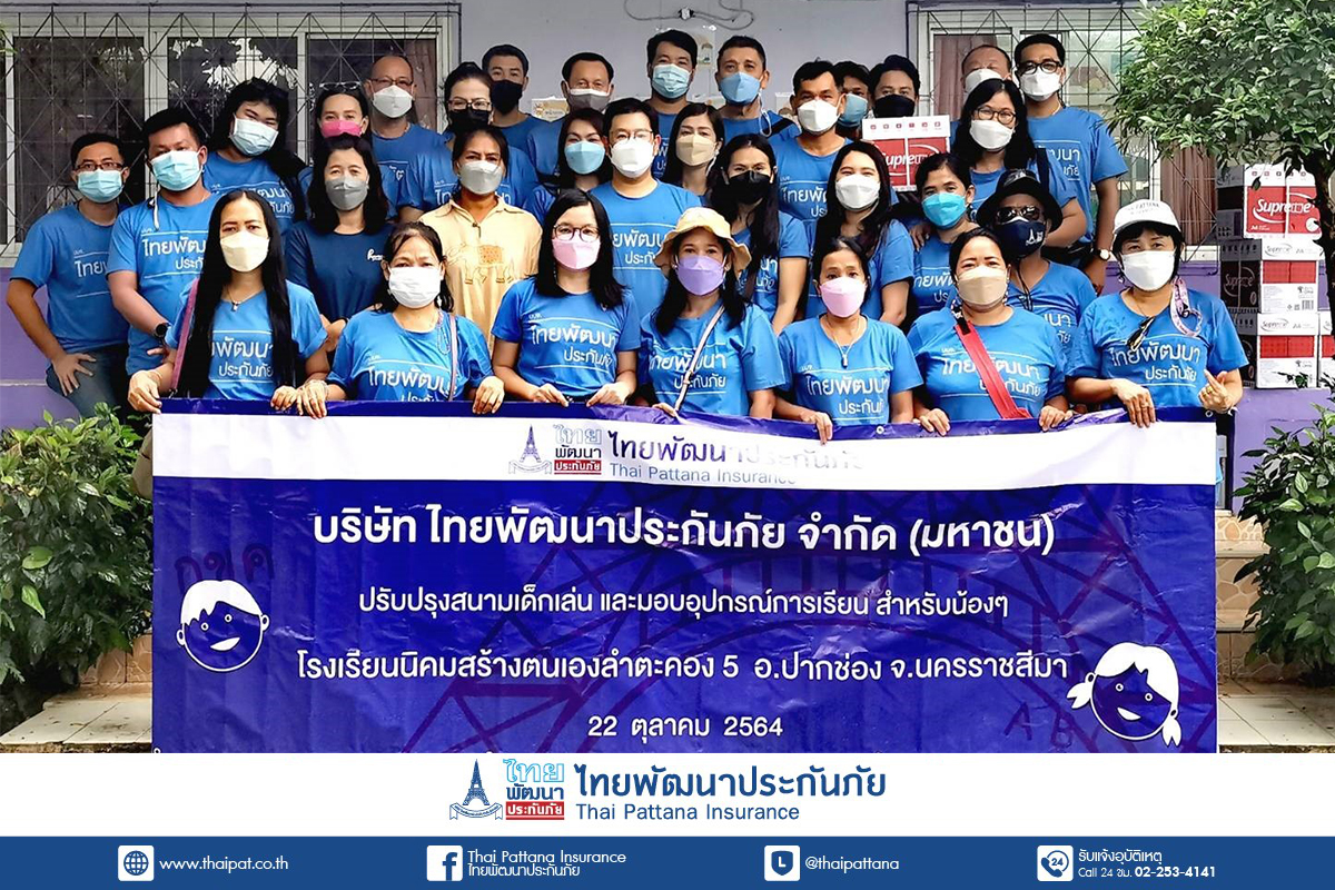 บมจ.ไทยพัฒนาประกันภัย ทำกิจกรรมปรับปรุงสนามเด็กเล่นและปรับทัศนียภาพให้กับเด็กๆ รร.นิคมสร้างตนเองลำตะคอง 5 อ.ปากช่อง เมื่อวันที่ 22 ต.ค. 64 รายละเอียดเพิ่มเติม