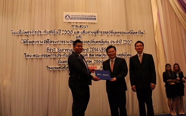 เมื่อวันพุธ 25 มีนาคม 2558 ที่ผ่านมา สมาคมประกันวินาศภัยไทย ได้จัดพิธีมอบรางวัล โครงการรางวัลผู้สำรวจอุบัติเหตุรถยนต์ดีเด่น ประจำปี 2557 Best Surveyor Award 2014 (BSA) ณ โรงแรมสวิสโฮเตล เลอคองคอร์ด โดยเป็นที่น่ายินดีกับบุคลากร ของบริษัท ไทยพัฒนาประกันภัย จำกัด (มหาชน) ที่ได้รับรางวัลชนะเลิศ และรางวัลชมเชยอีก 2 รางวัล เป็นความภาคภูมิใจ ของบริษัทฯ ที่สามารถผลิตบุคลากร ที่มีความรู้ ความสามารถและเข้าใจหลักการบริการสินไหมฯรถยนต์ได้เป็นอย่างดี
