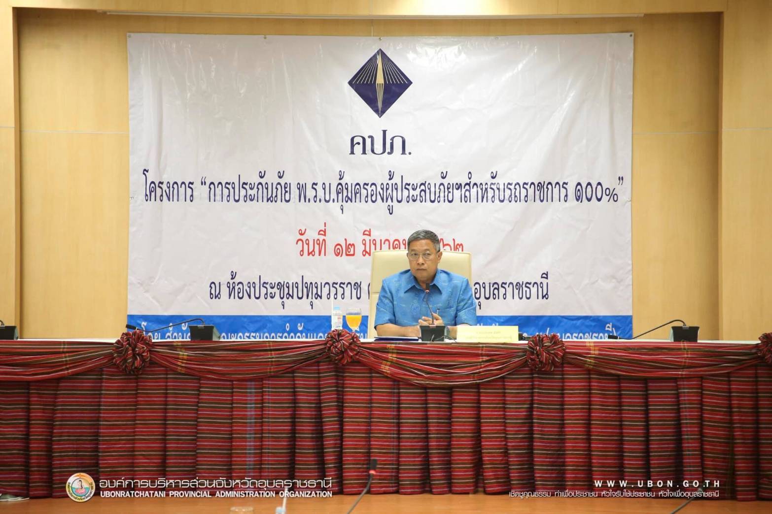 วันที่ 12 มีนาคม 2562 สำนักงาน คปภ.ภาค 5 (อุบลราชธานี) ได้จัดโครงการประกันภัย พ.ร.บ.คุ้มครองผู้ประสบภัยฯสำหรับรถราชการ 100% มีวัตถุประสงค์เพื่อรณรงค์ให้ส่วนราชการจัดทำประกันภัยรถ 100 % และเพื่อให้ผู้ประสบภัยได้รับความคุ้มครองสูงสุดตามเงื่อนไขกรมธรรม์ประกันภัย ณ ห้องประชุมพรหมวรราช ศาลากลางจังหวัดอุบลราชธานี