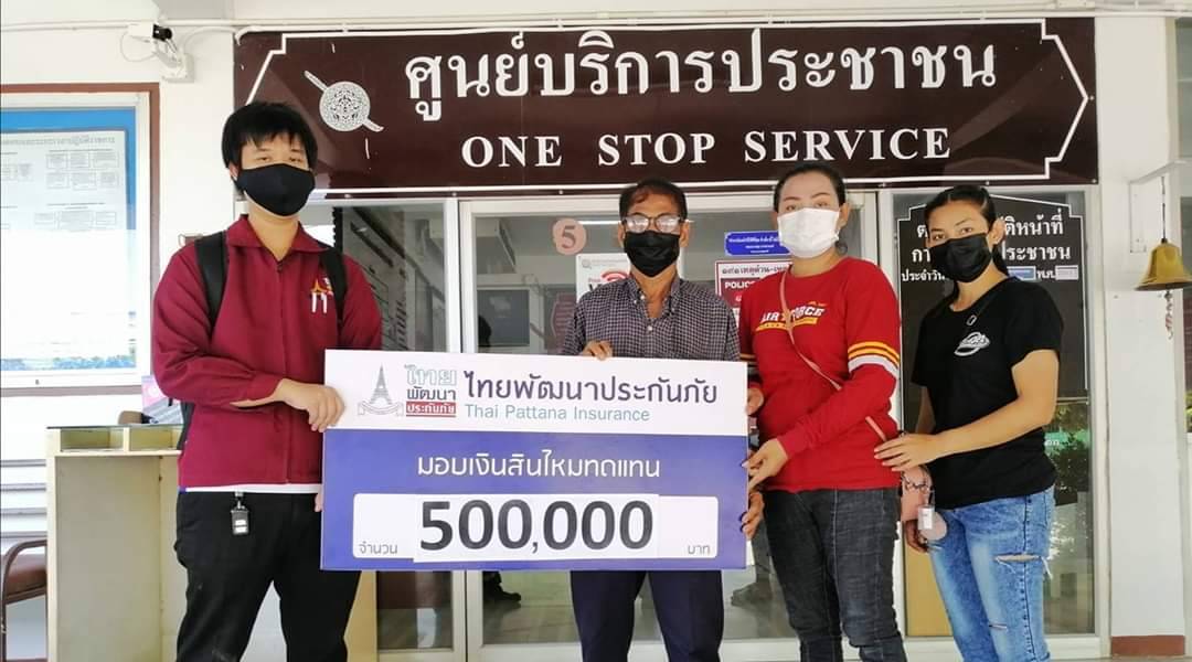 บมจ.ไทยพัฒนาประกันภัยโดยพนักงานสินไหมฯรถยนต์มอบเงินสินไหมทดแทนจำนวน 500,000 บาท ให้แก่บิดาผู้เสียชีวิต จากเหตุการณ์รถประกันชนผู้ประสบภัย ที่สภ.หนองเสือ จ.ปทุมธานี บริษัทฯขอแสดงความเสียใจมา ณ ที่นี้ด้วย