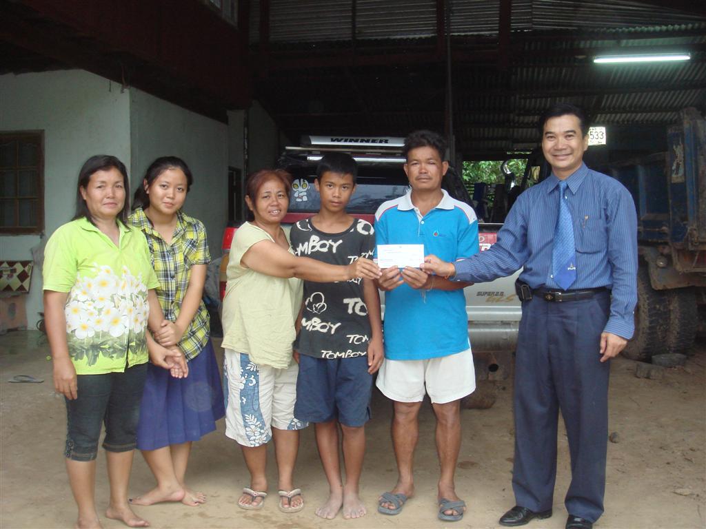นายพรตพร อาฒยะพันธุ์ ผู้จัดการสาขาร้อยเอ็ด บริษัท ไทยพัฒนาประกันภัย จำกัด ได้มอบเช็คค่าสินไหมทดแทนกรมธรรม์คุ้มครองผู้ประสบภัยจากรถ จำนวนเงิน 185,000.- บาท (หนึ่งแสนแปดหมื่นห้าพันบาทถ้วน) ให้แก่ นายวิเชียร แสนมนตรี ราษฎรบ้านดอนสวรรค์ อำเภอเชียงขวัญ จังหวัด ร้อยเอ็ด ซึ่งประสบภัยจากรถ ถูกวัสดุมีคม ที่บรรทุกอยู่บนรถยนต์ ทะเบียน บล 3283 กรุงเทพฯ ตกใส่บริเวณใบหน้าทำให้ดวงตาข้างซ้ายบอดสนิท โดยบริษัทฯ ได้รับผิดชอบค่าใช้จ่ายในการรักษาพยาบาลในโรงพยาบาล จำนวน 15,000 บาท ไปก่อนหน้านี้แล้ว